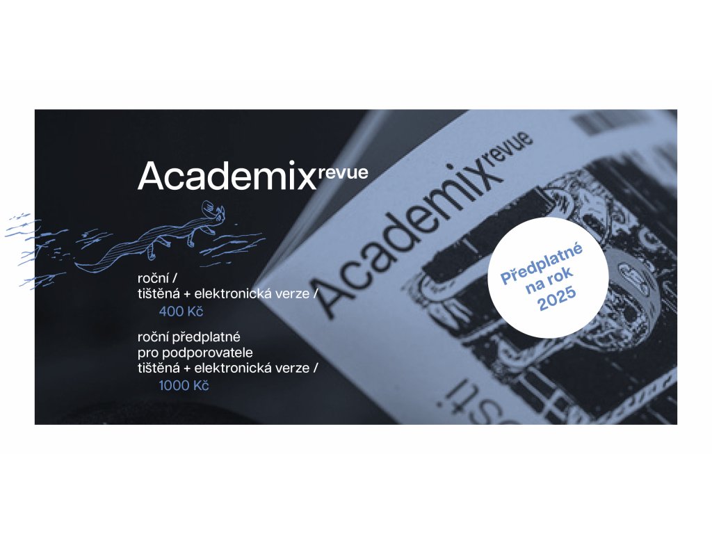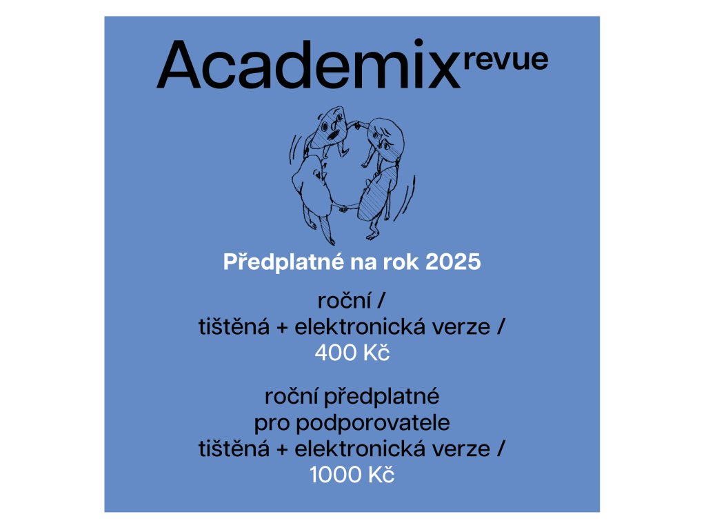 Celoroční předplatné je nejjednoduším způsobem, jak nás můžete podpořit. Staňte se předplatitelem Academix revue a získejte přístup ke všem článkům, pdf starších čísel, informace o našich dalších aktivitách, pozvánky na akce, slevy na nové knihy a další výtvory z dílny Academix.